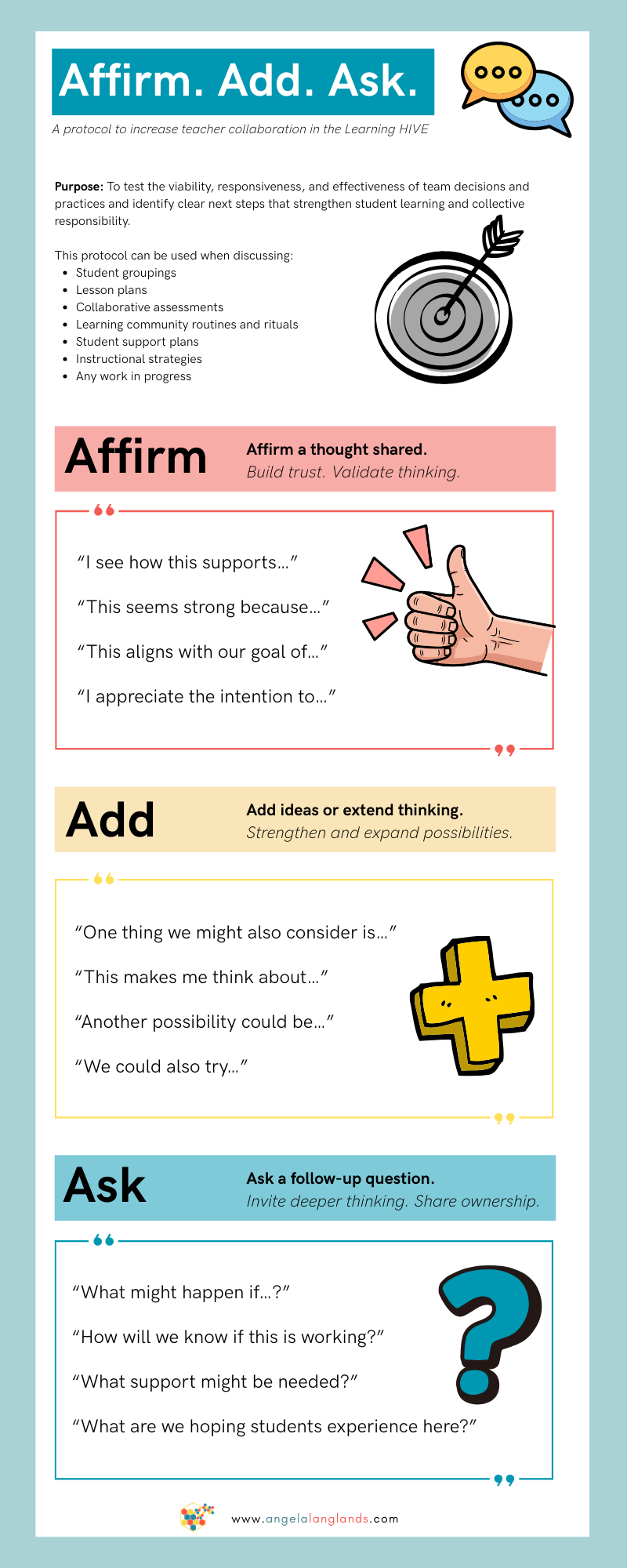 This protocol helps teams affirm strengths, build on ideas, and ask questions that move learning forward.